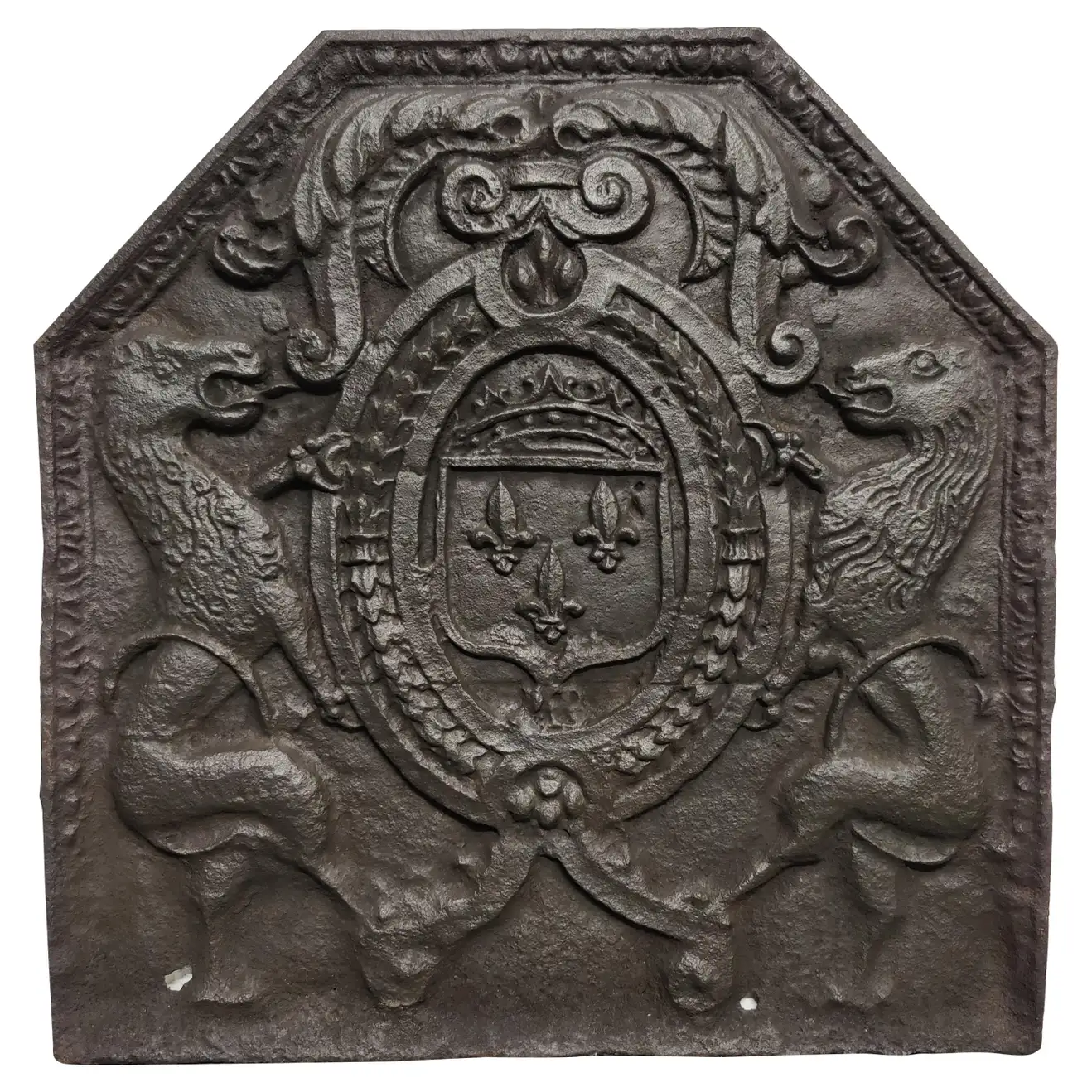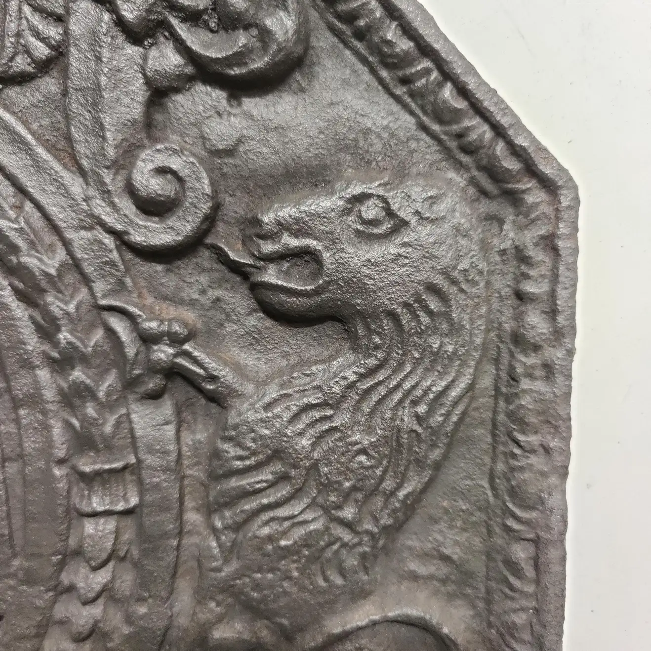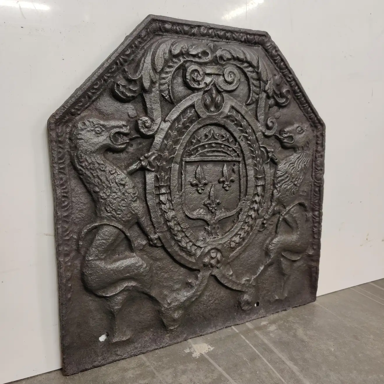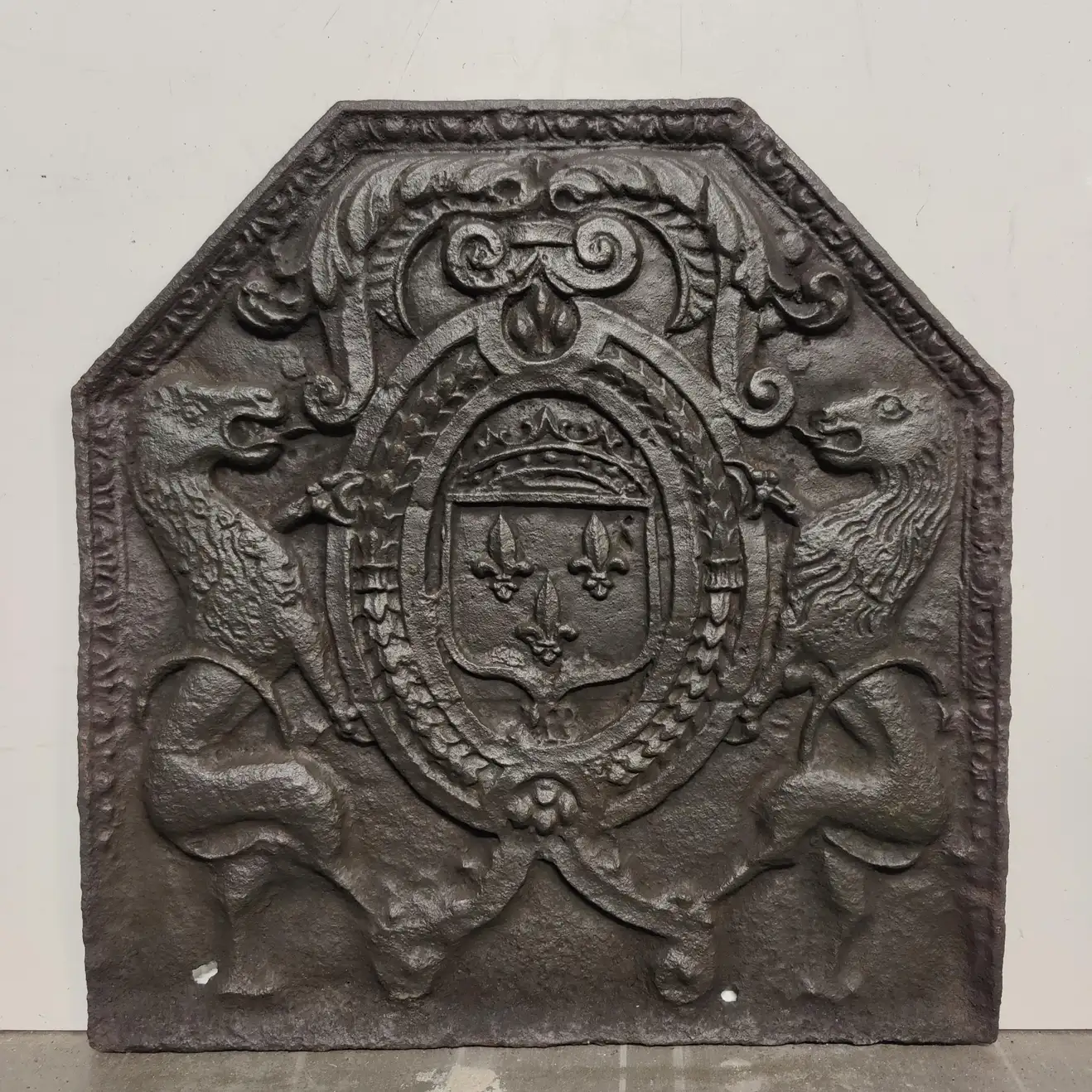 Antique fireback / backsplash, coat of arms lions.