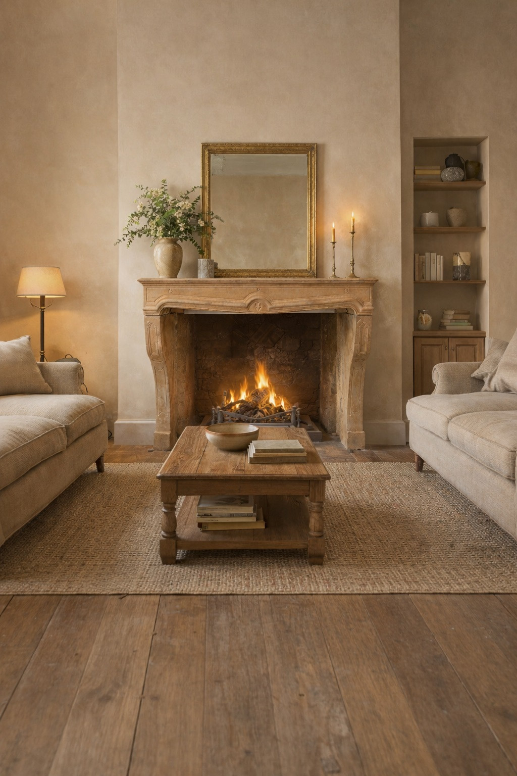 Over more than a century, the limestone has developed a soft, warm patina that adds depth and authenticity to the piece. Natural variations in the stone, combined with light signs of age, give the fireplace a timeless presence that modern reproductions simply cannot replicate. This antique mantel would make a beautiful focal point in a living room, kitchen, bedroom, or country estate renovation, perfectly suited for interiors designed in French country, rustic, traditional, or transitional styles.