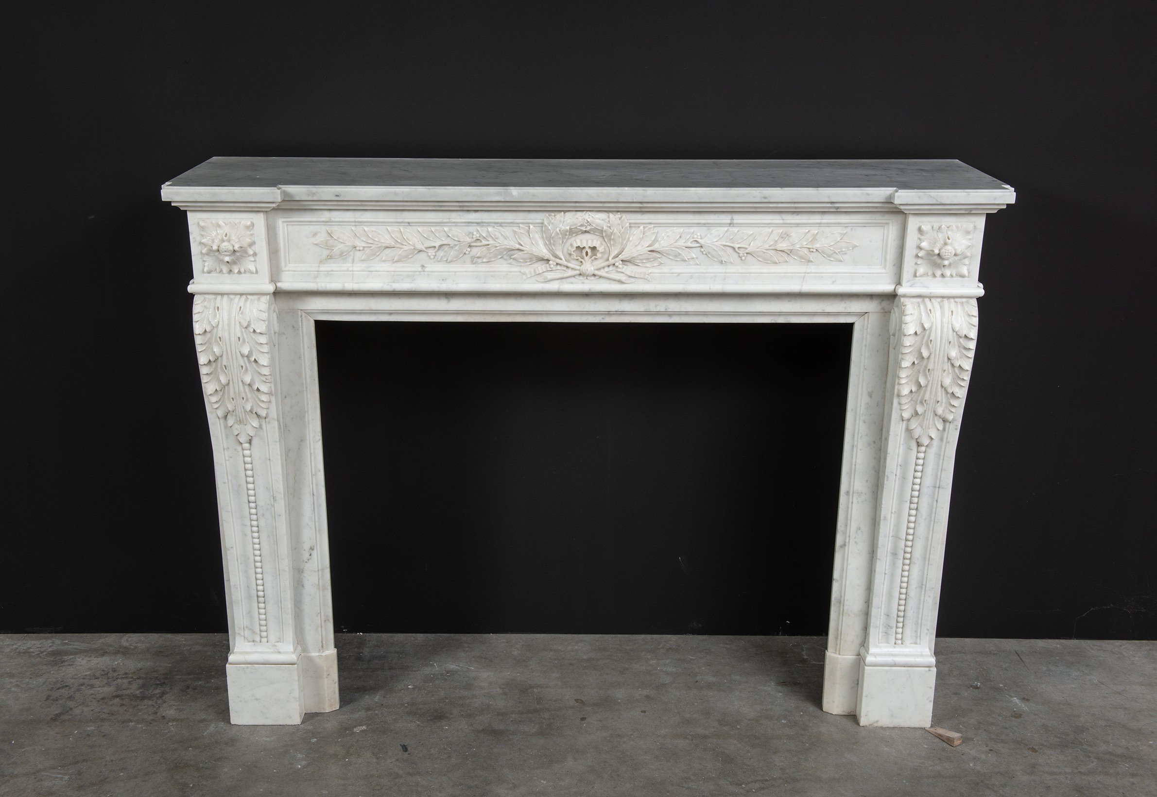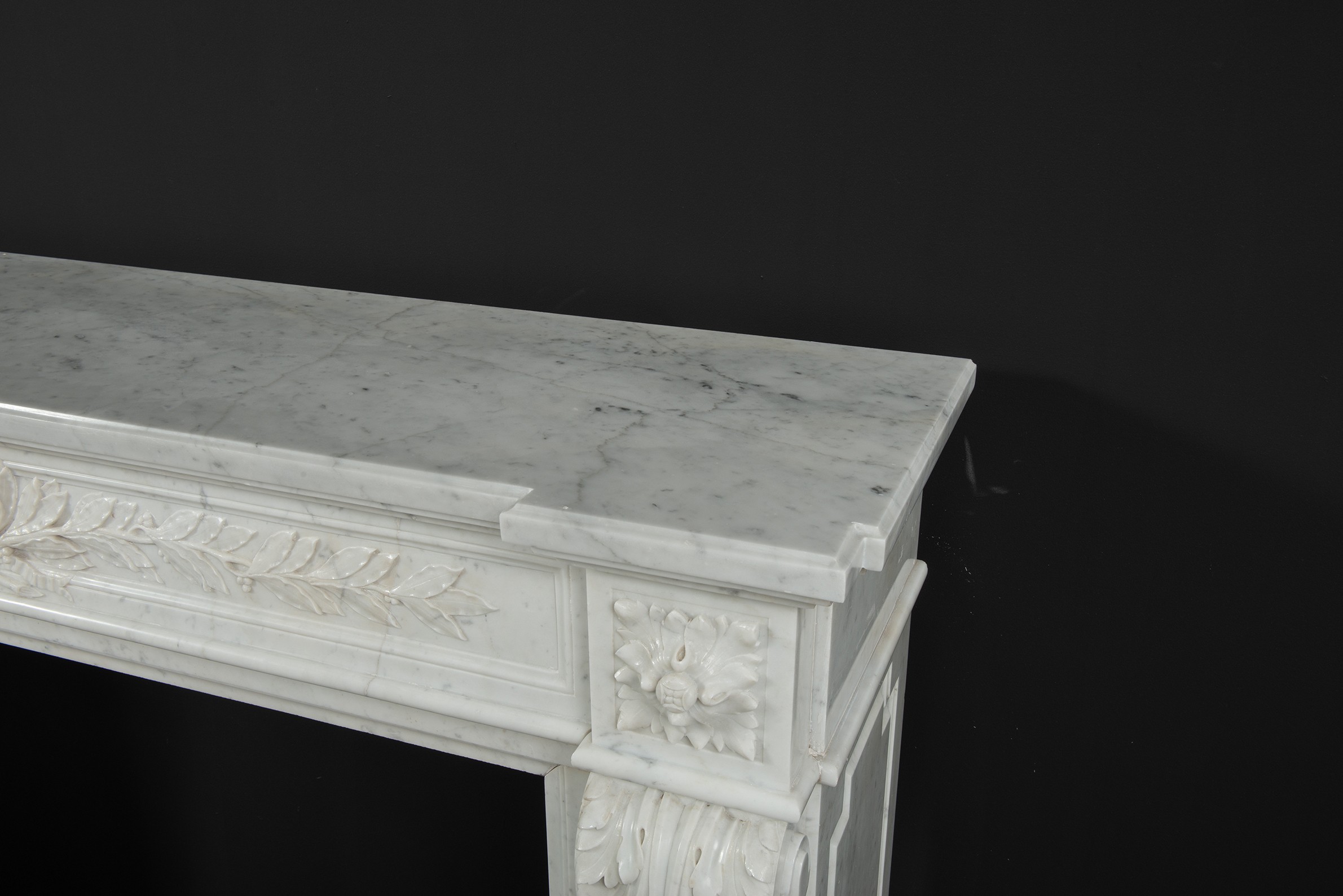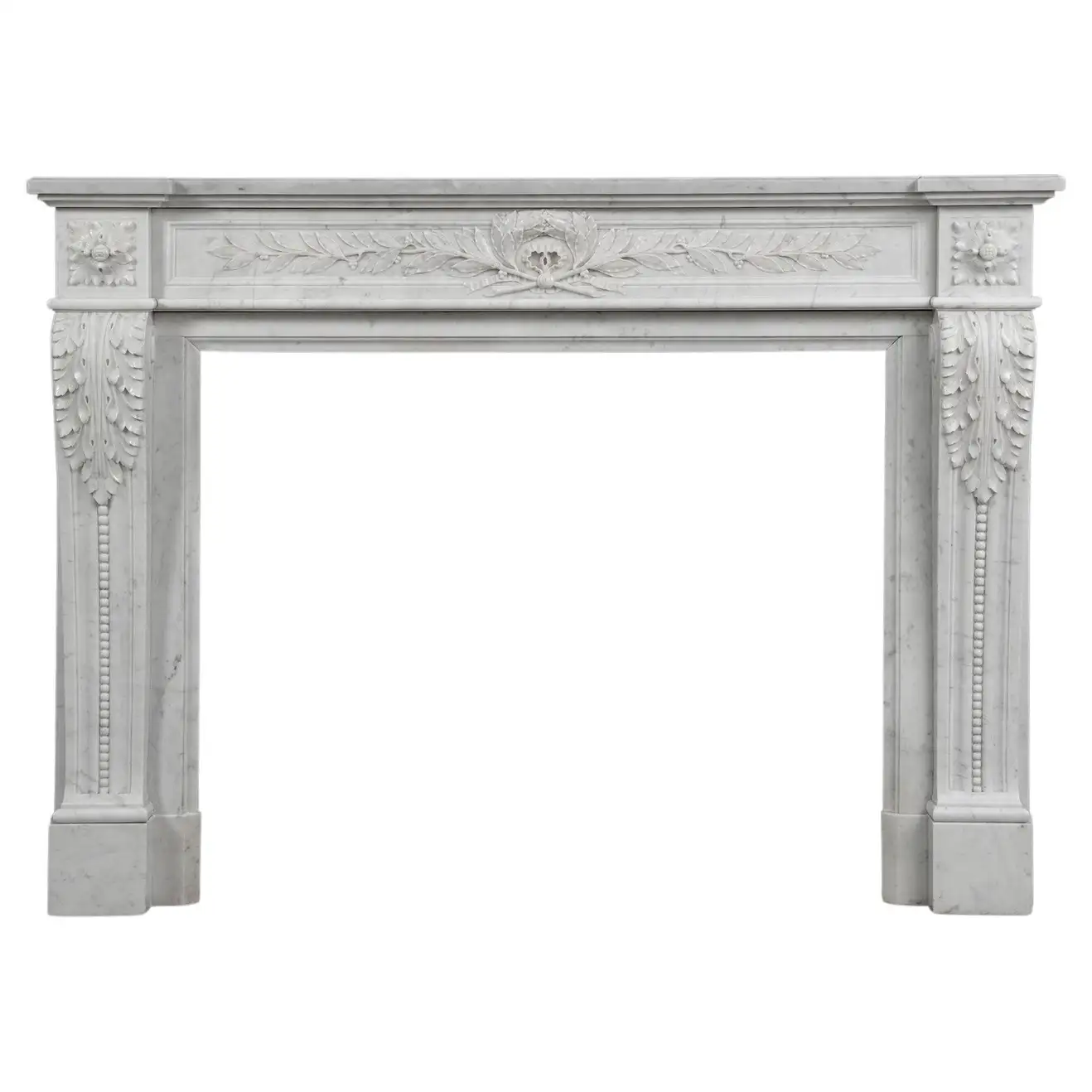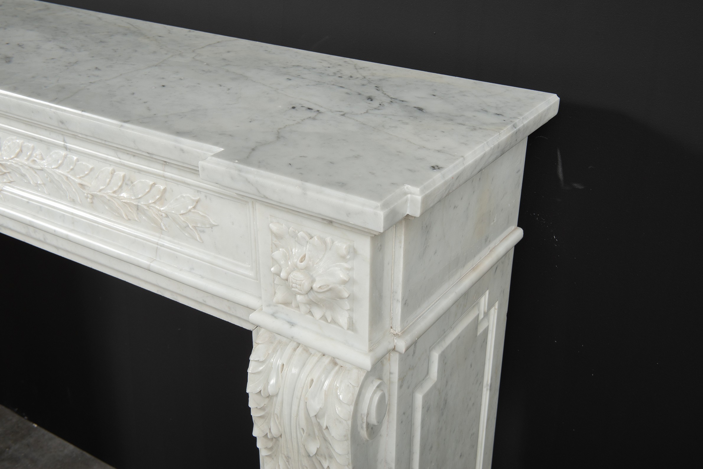 Parisian Carrara Marble Louis XVI Fireplace.