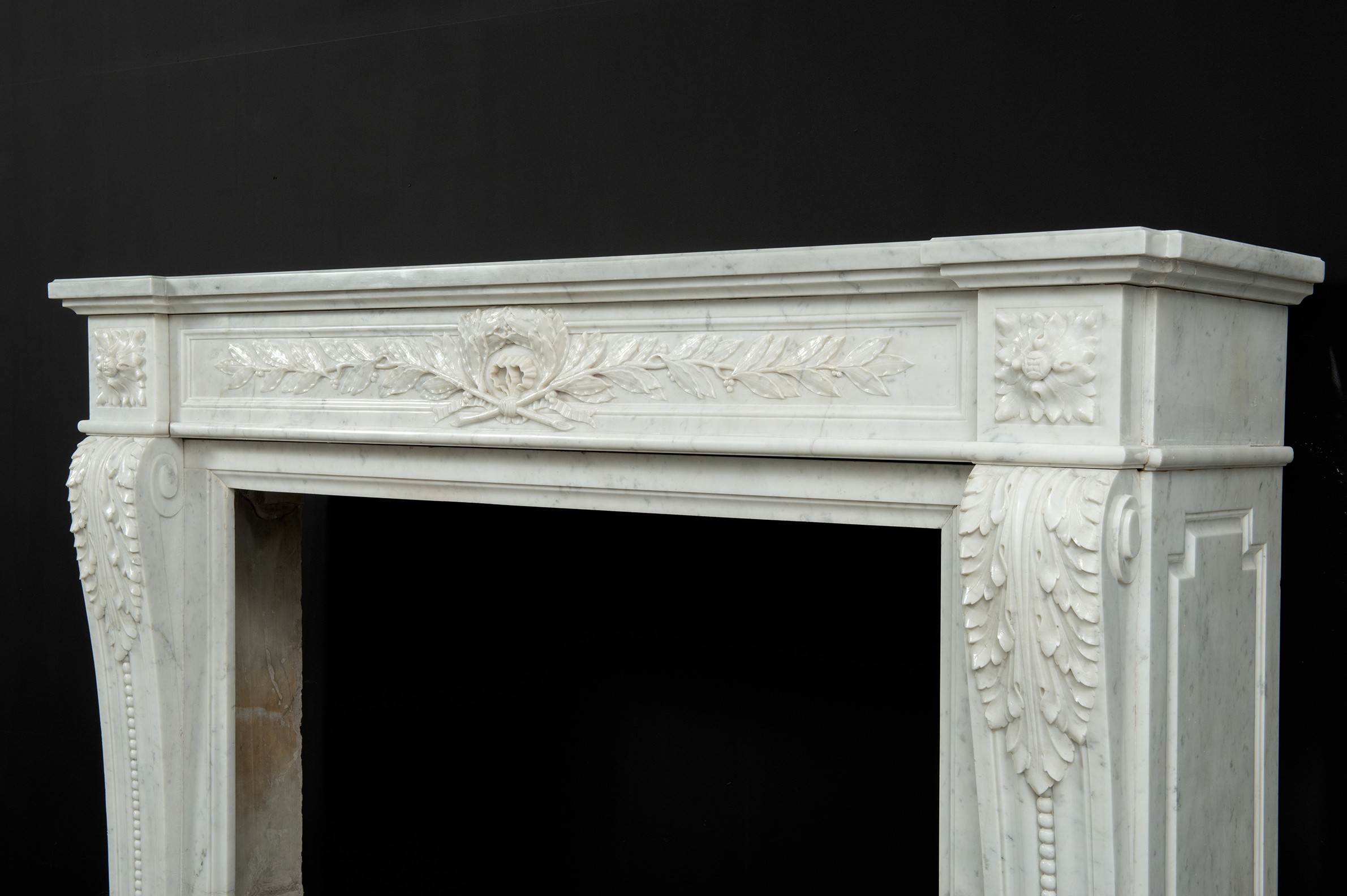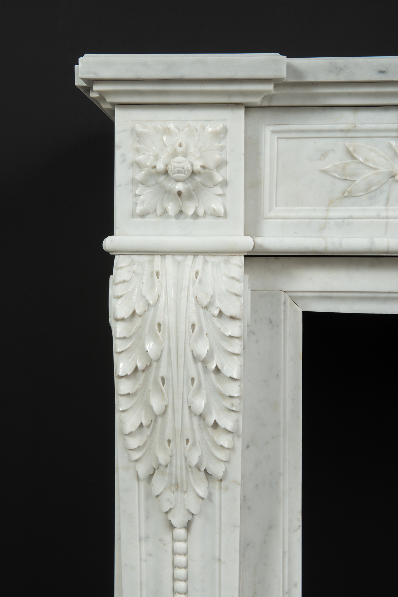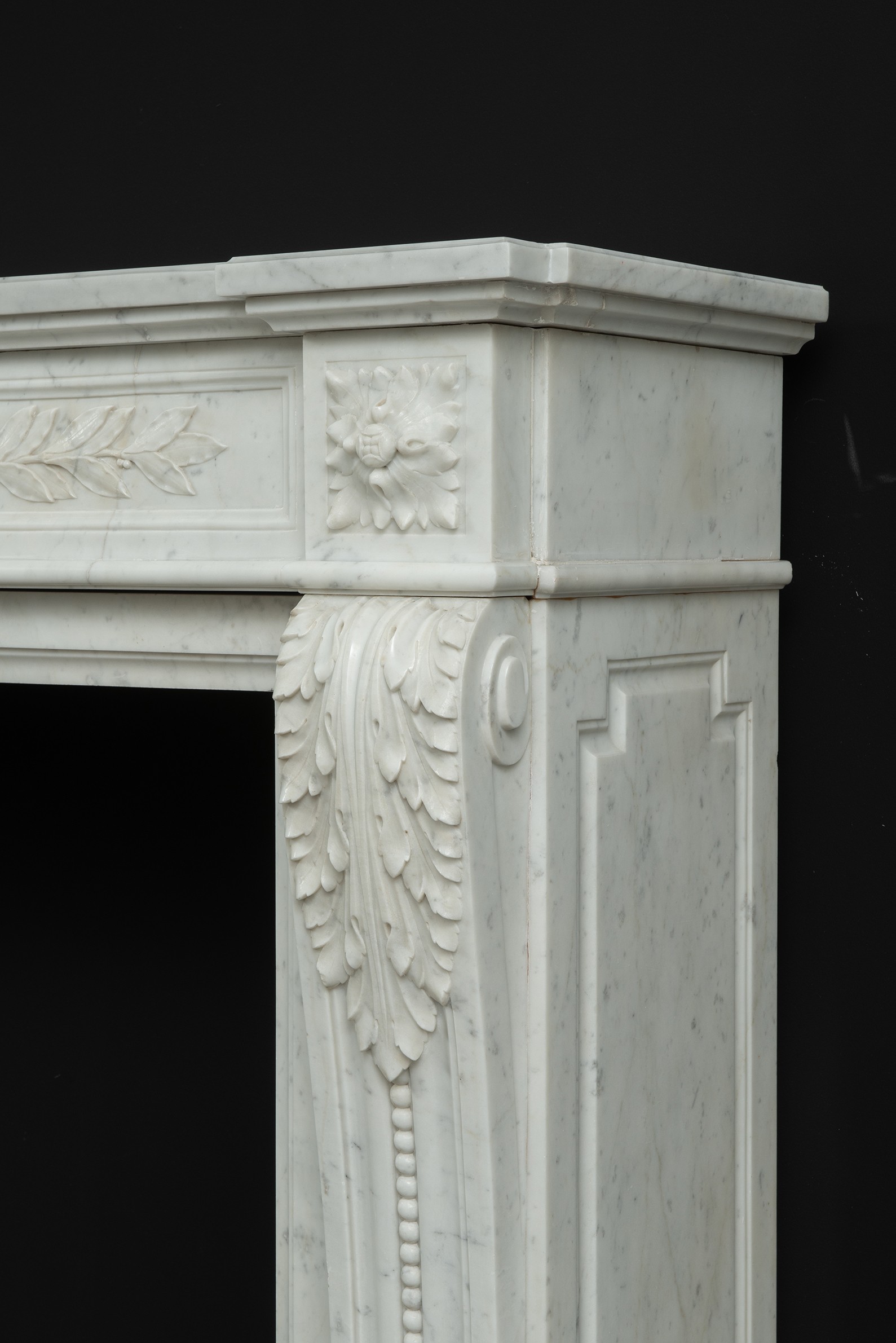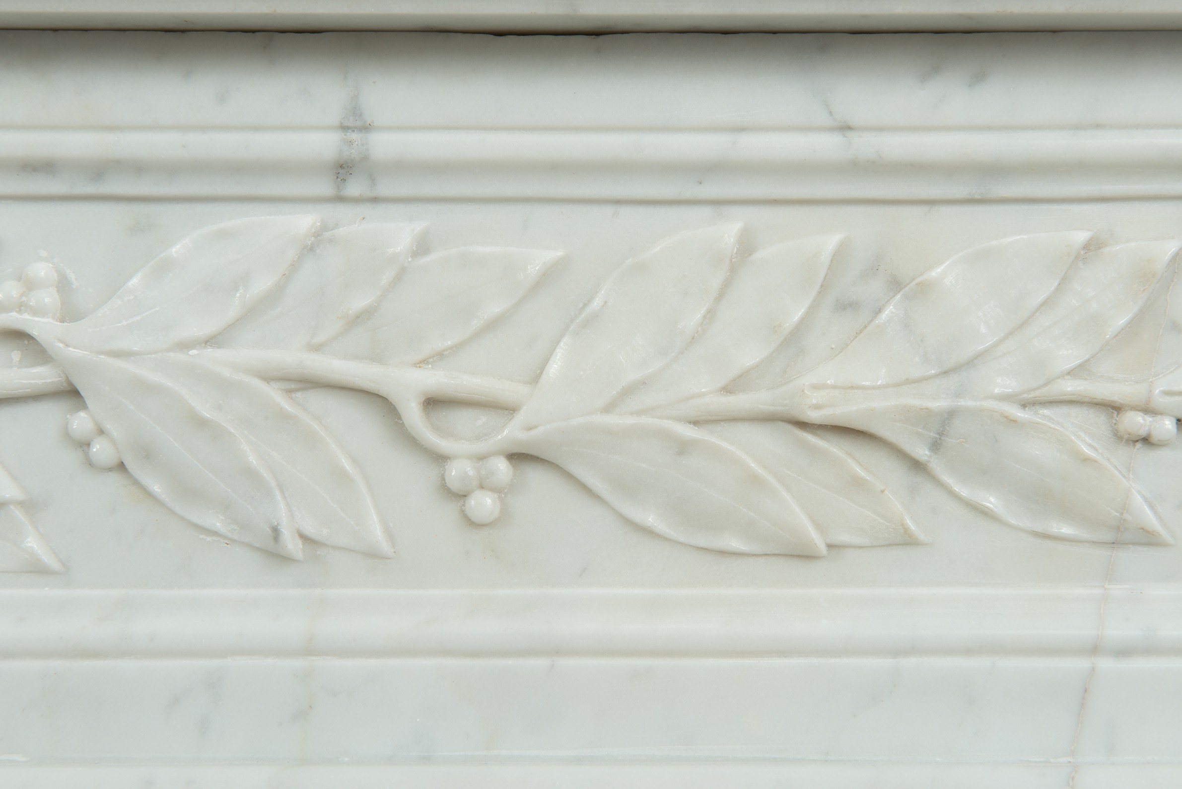 Parisian Carrara Marble Louis XVI Fireplace.