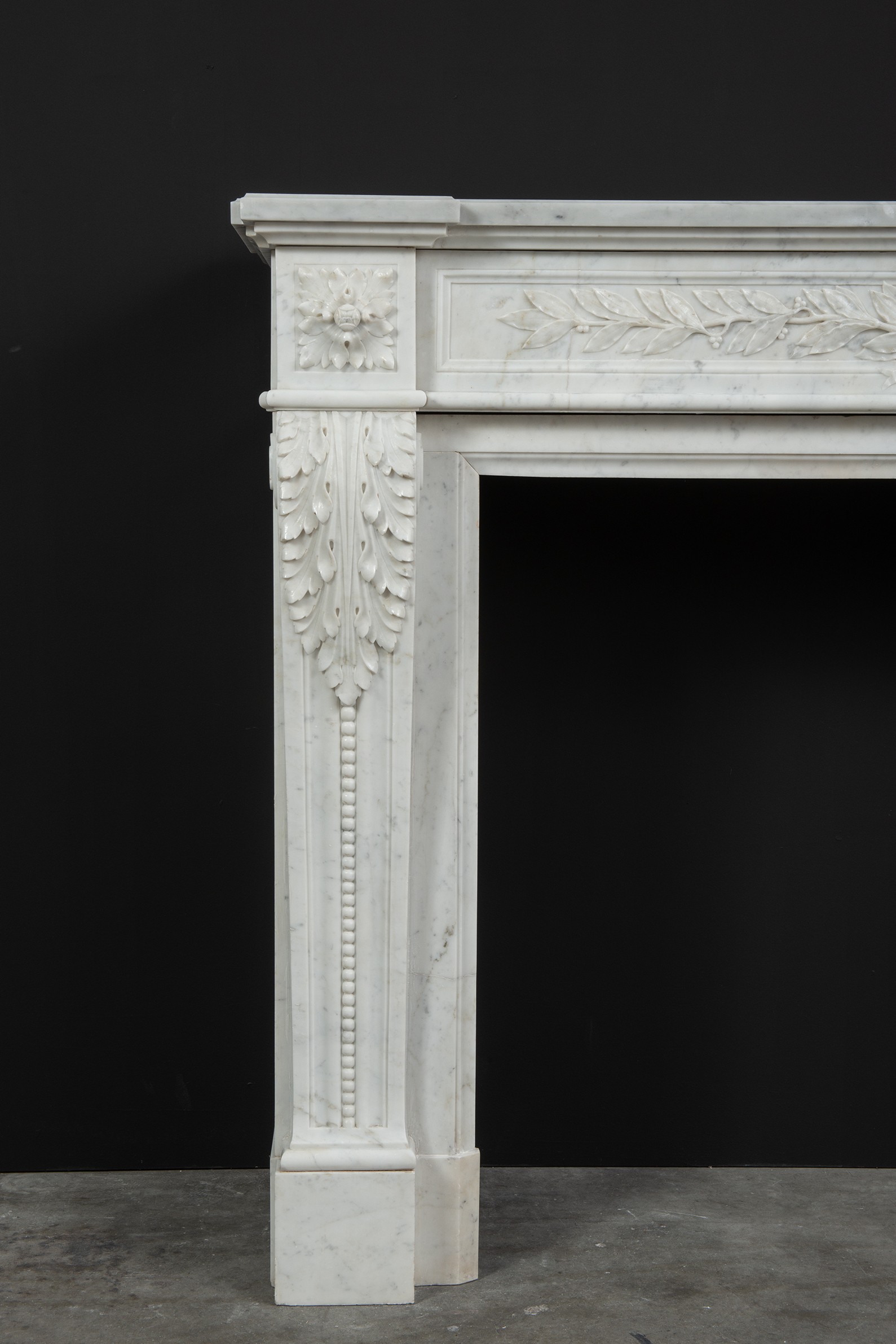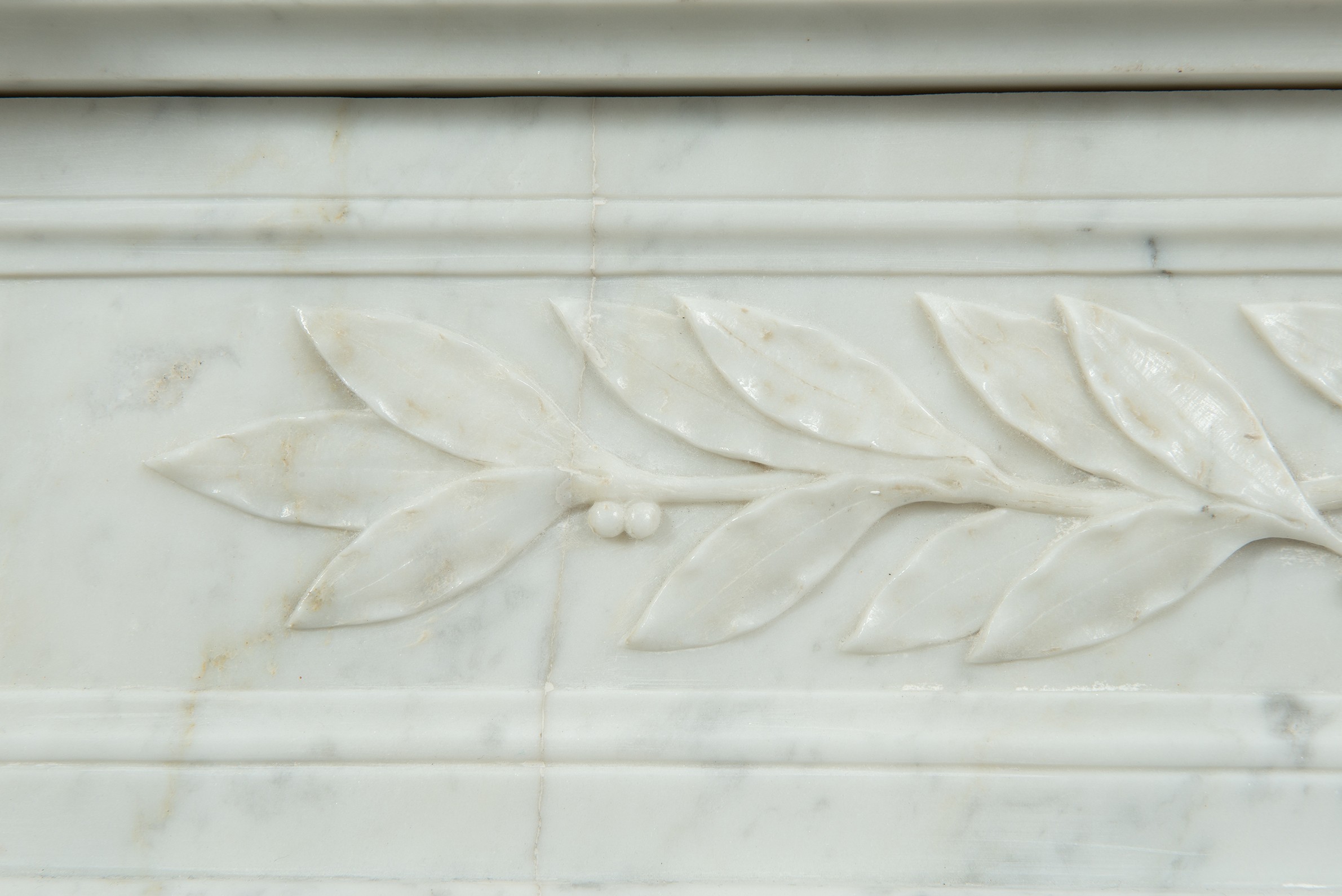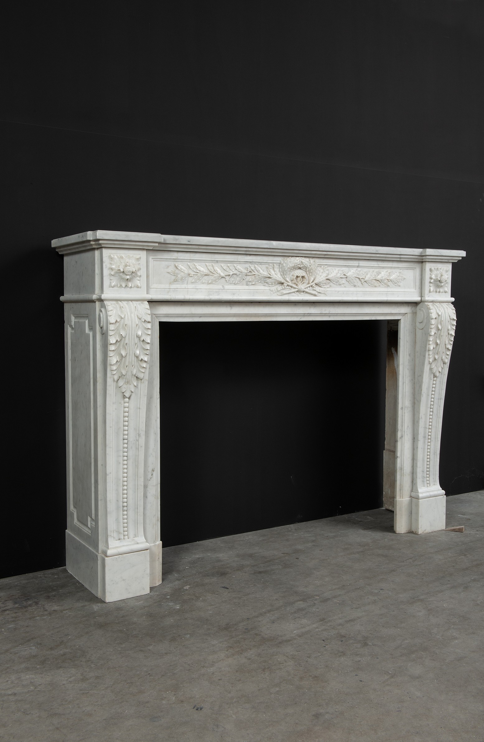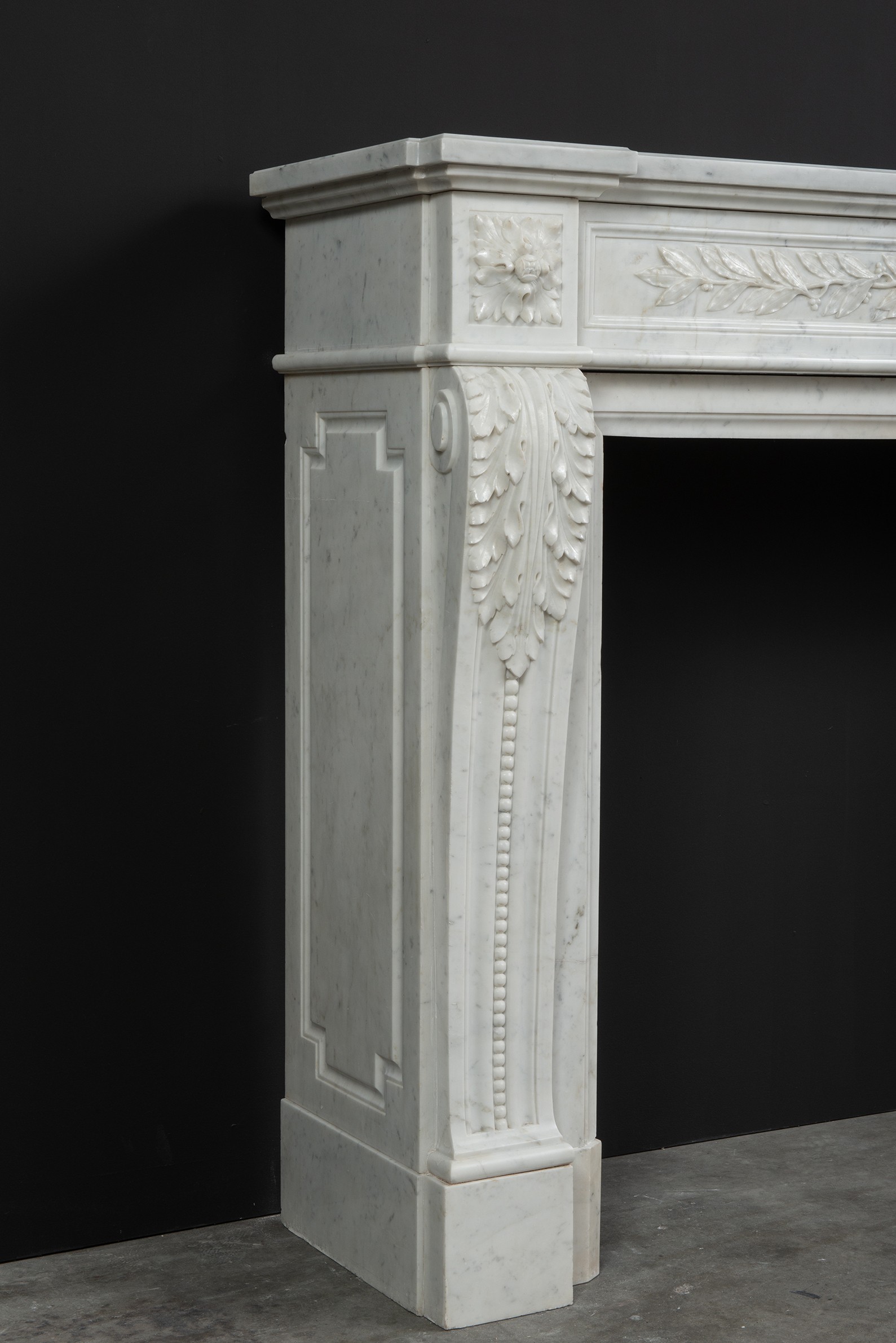 Parisian Carrara Marble Louis XVI Fireplace.