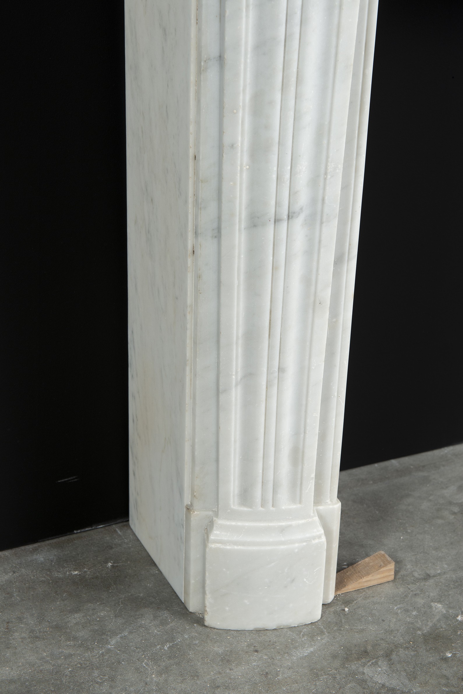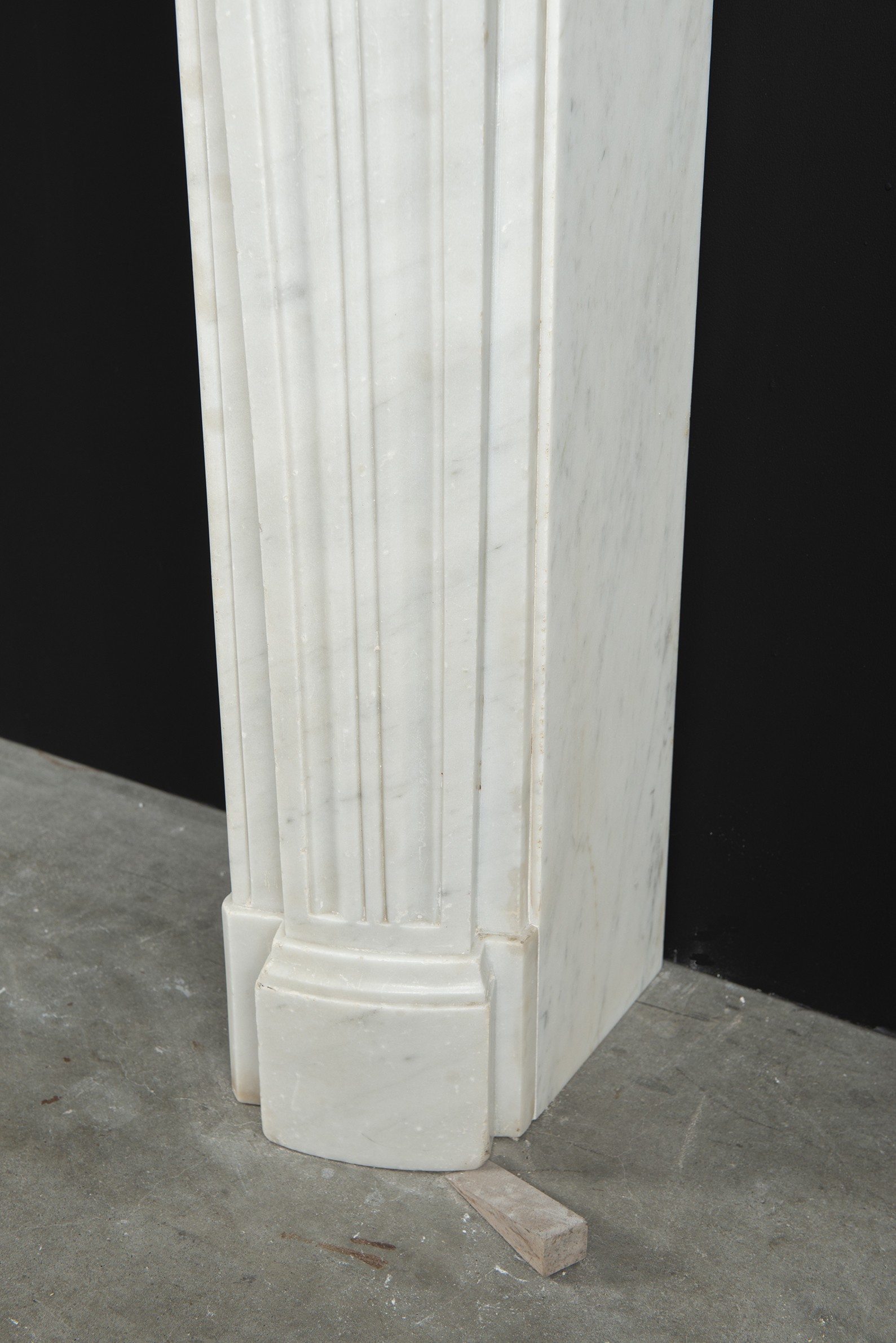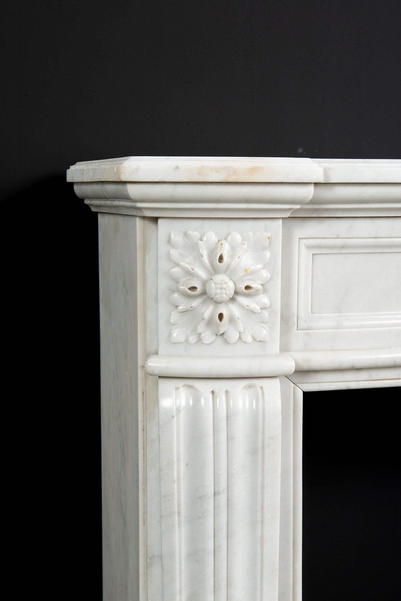Very exited to offer this unique little gem, perfect proportioned French Louis XVI fireplace mantel in beautiful Carrara white marble.