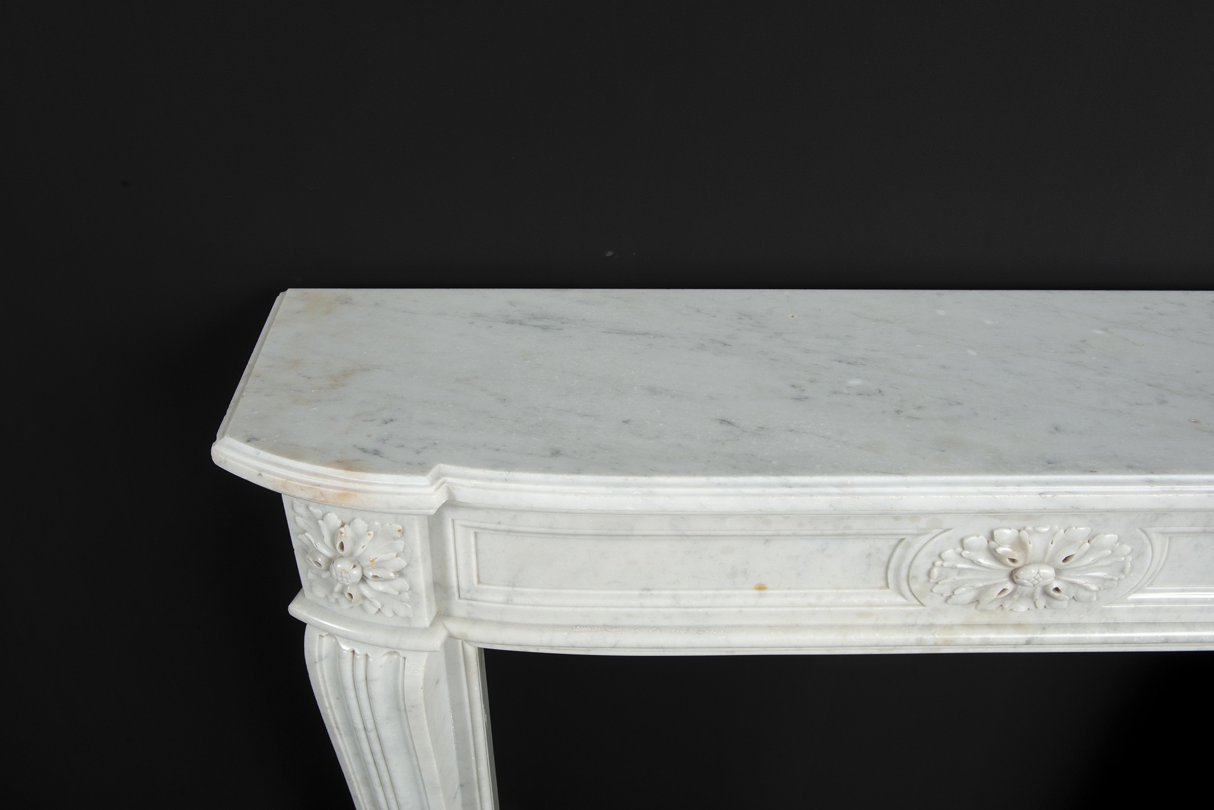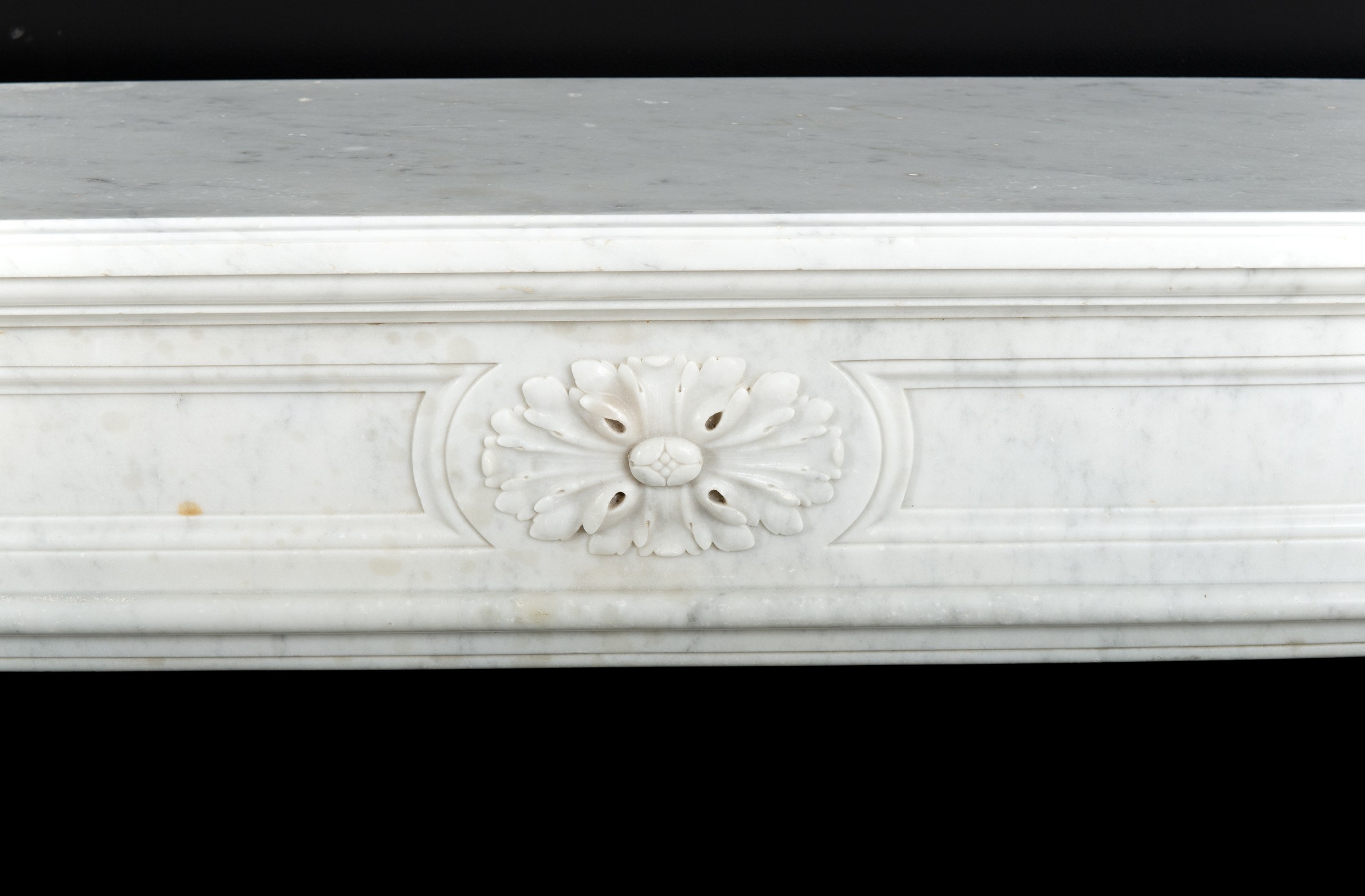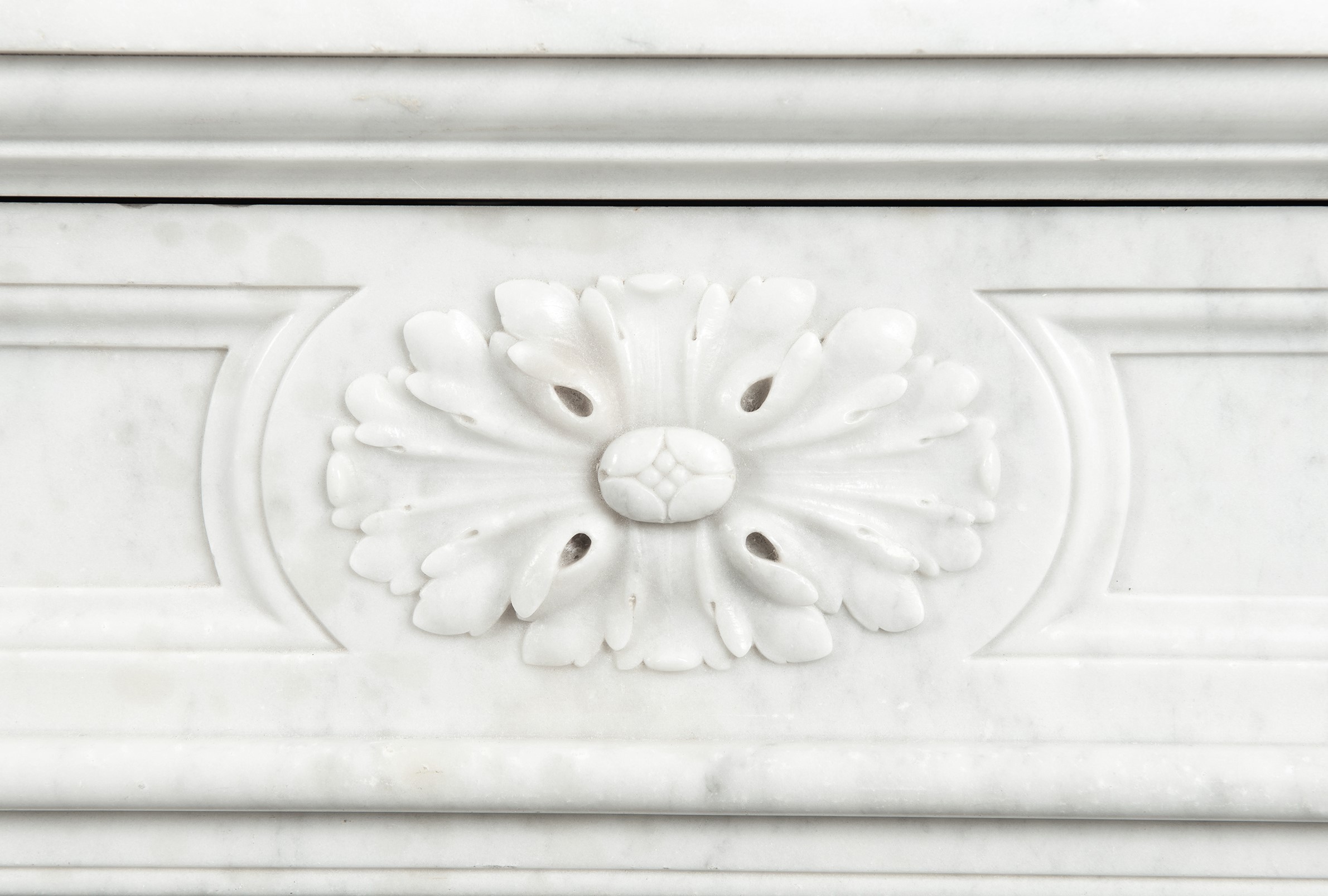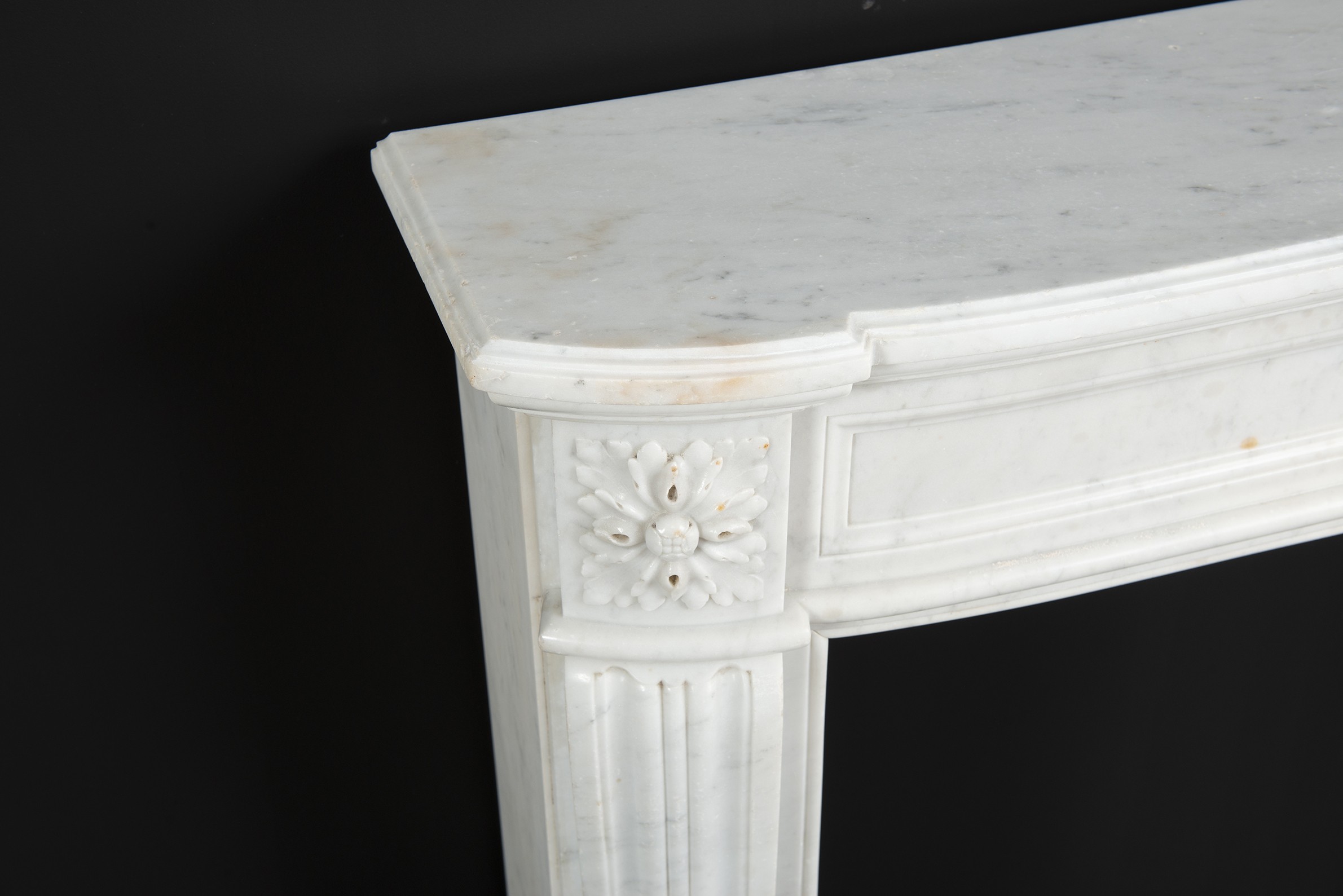 Very exited to offer this unique little gem, perfect proportioned French Louis XVI fireplace mantel in beautiful Carrara white marble.