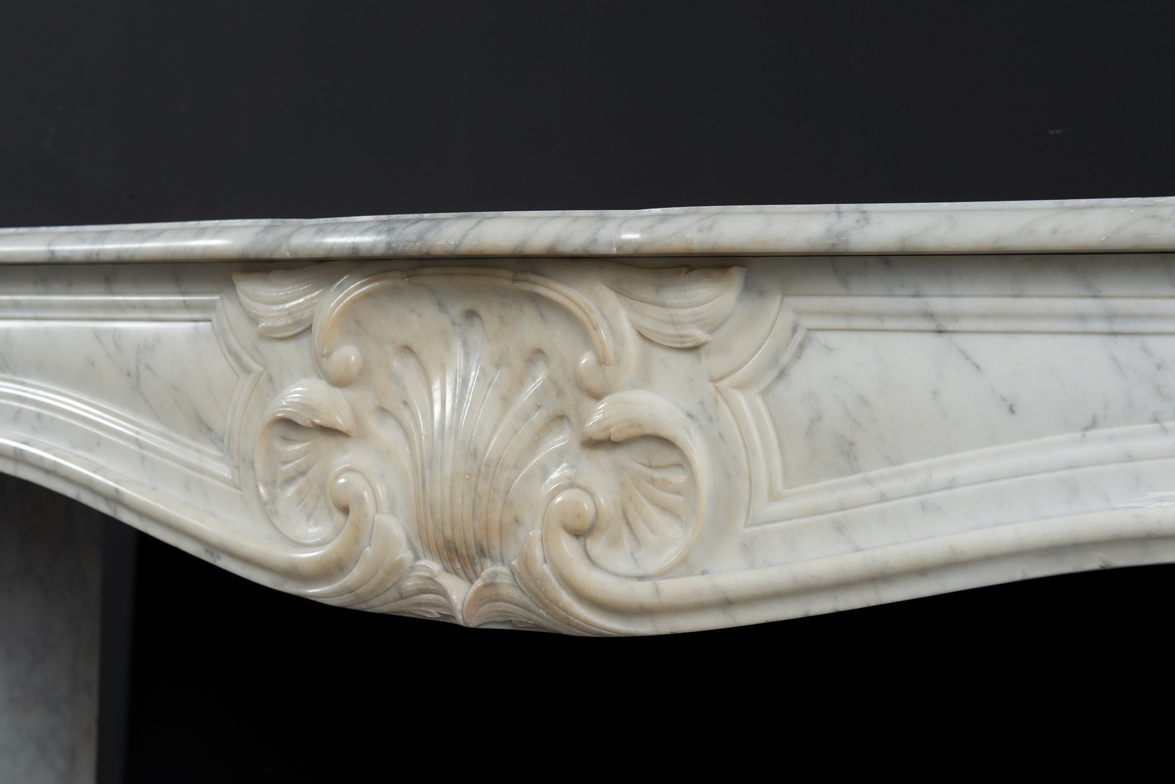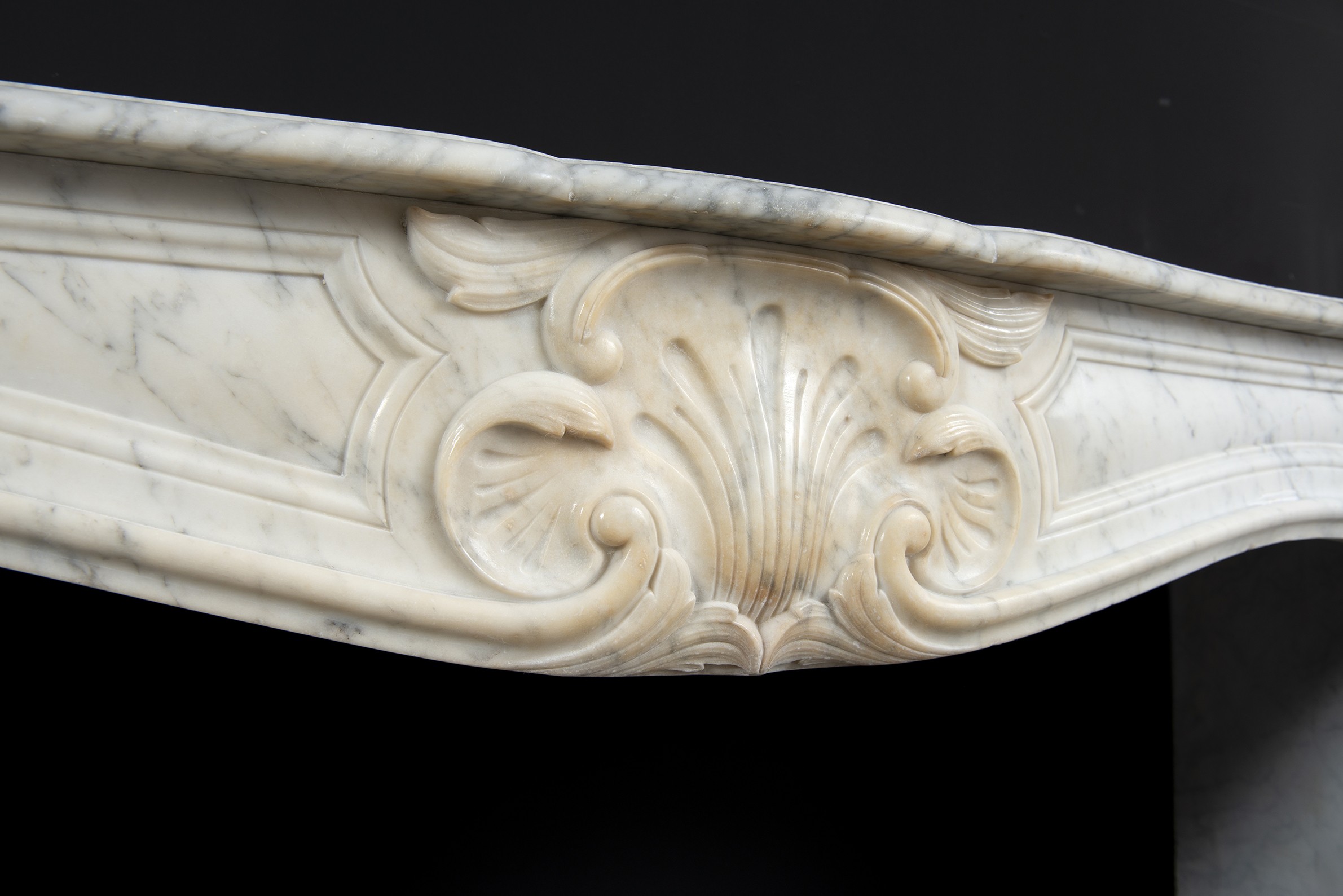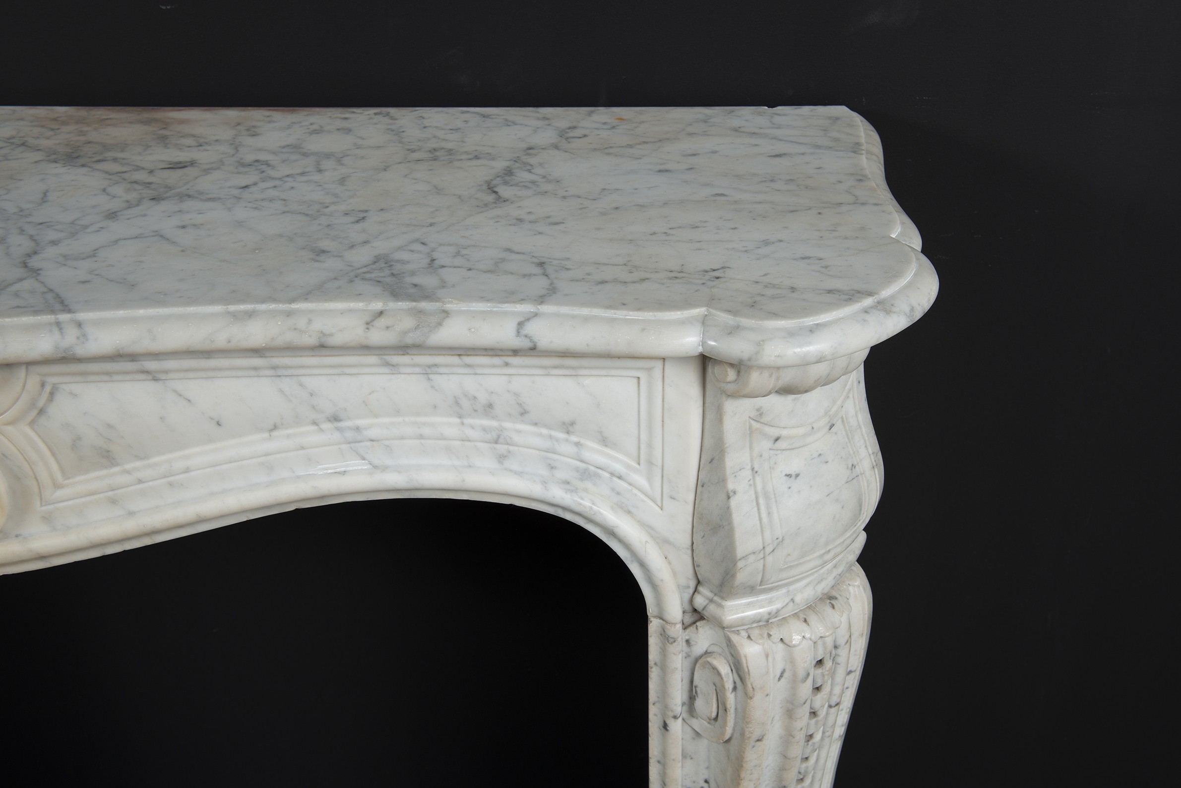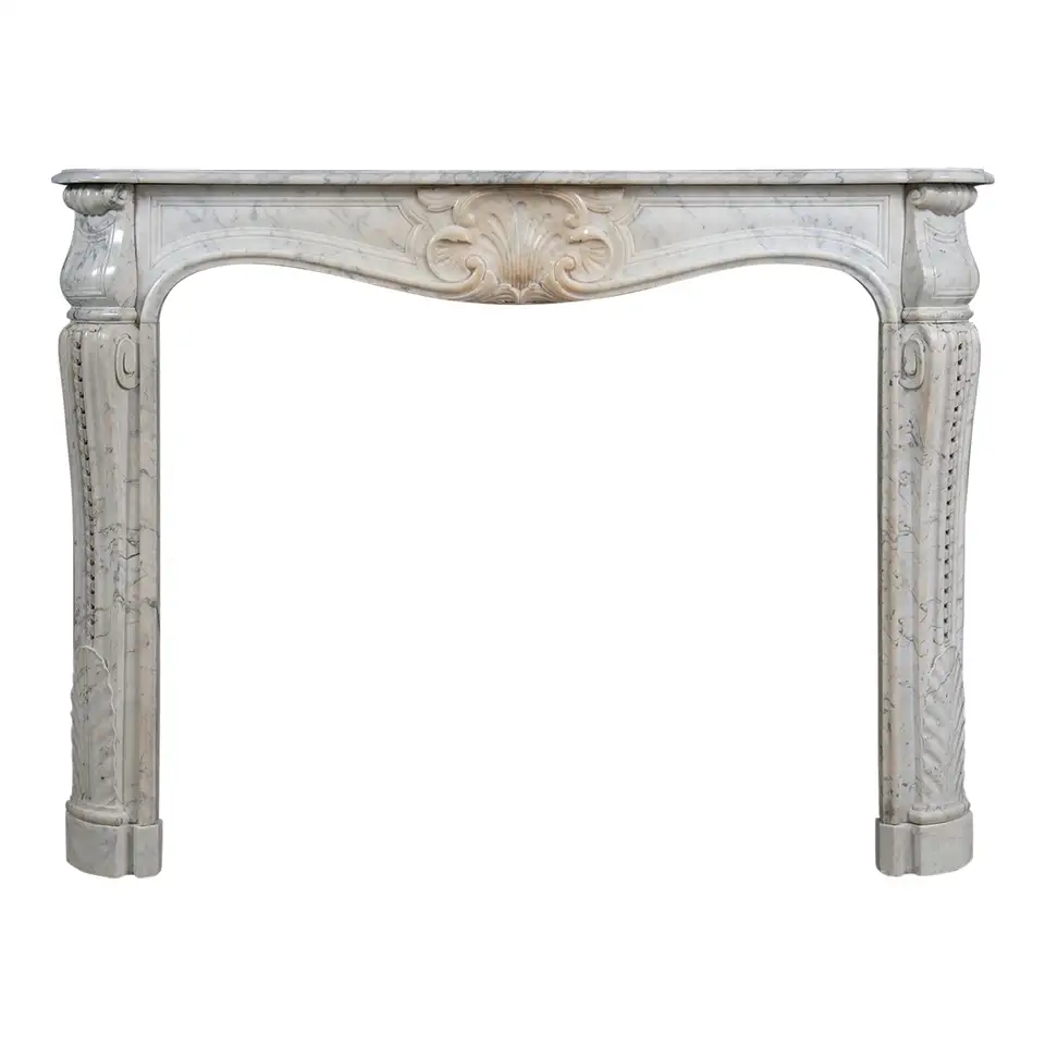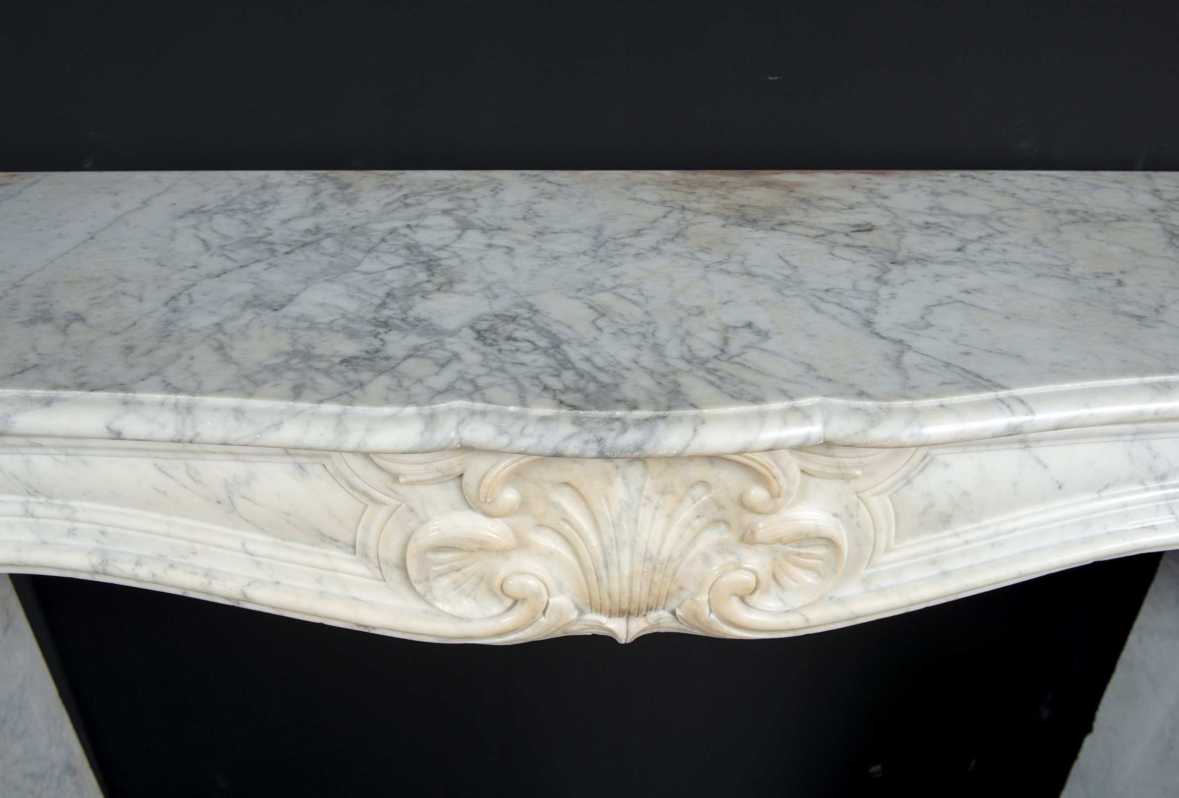 Antique Louis XV fireplace mantel in Carrara white marble.
