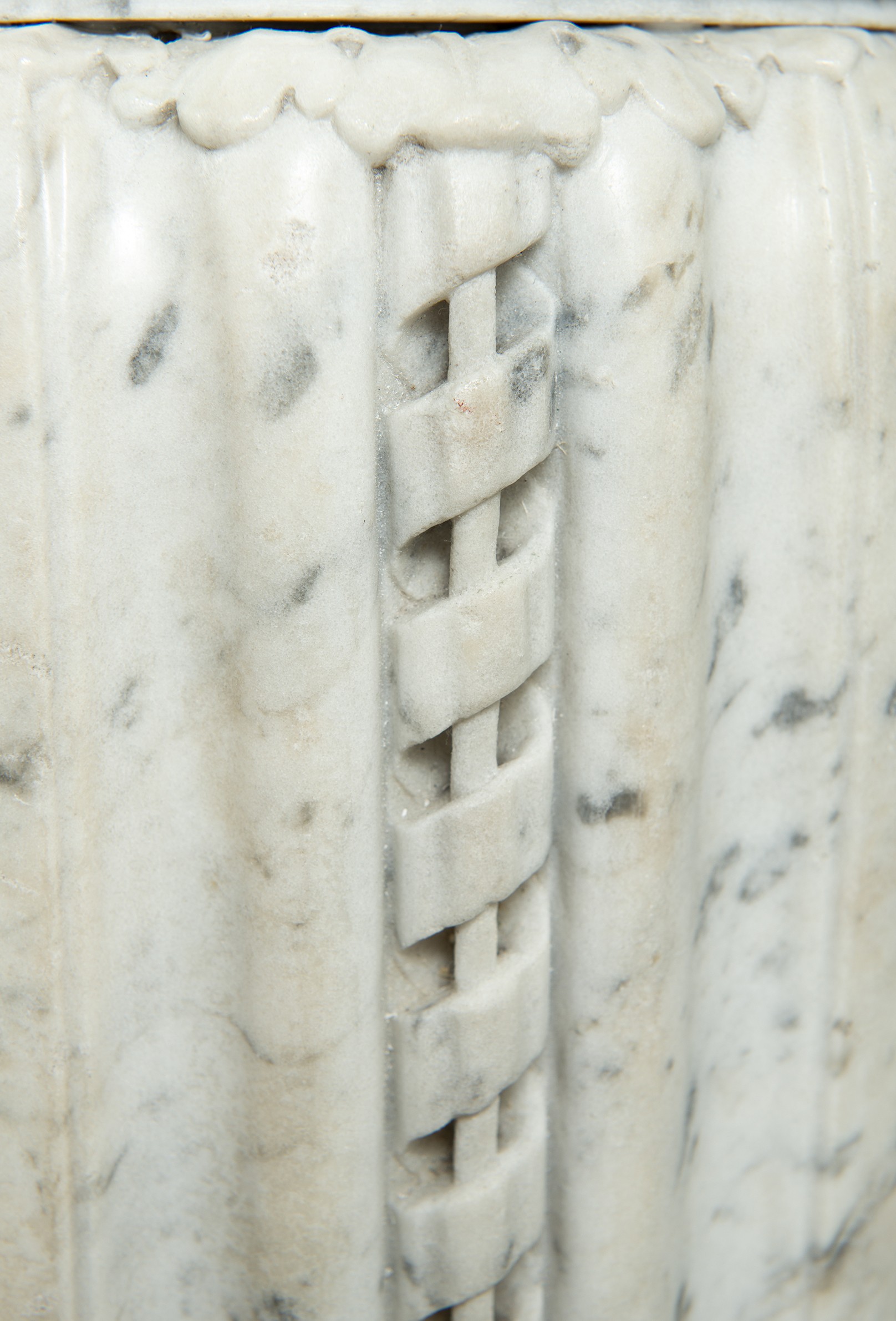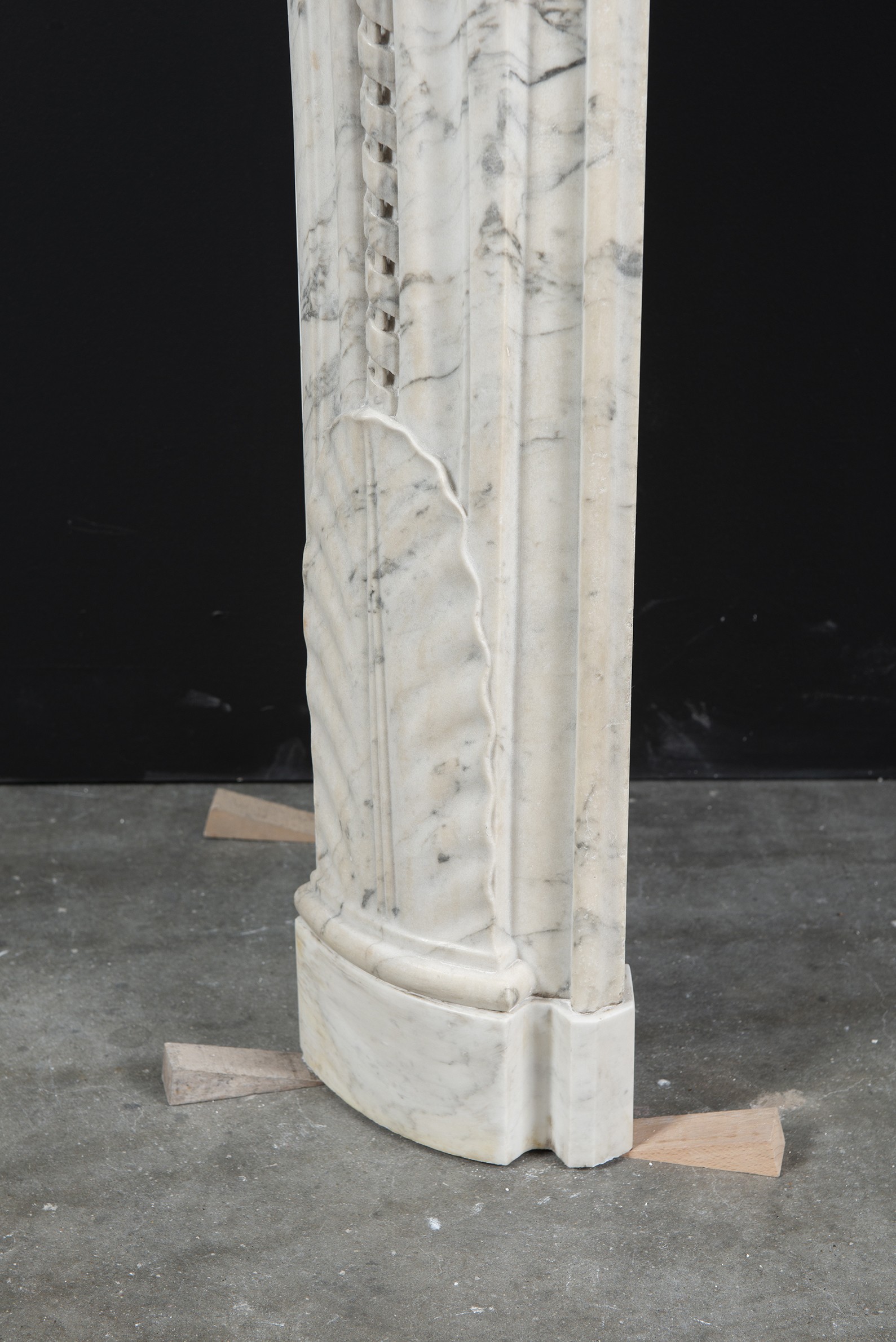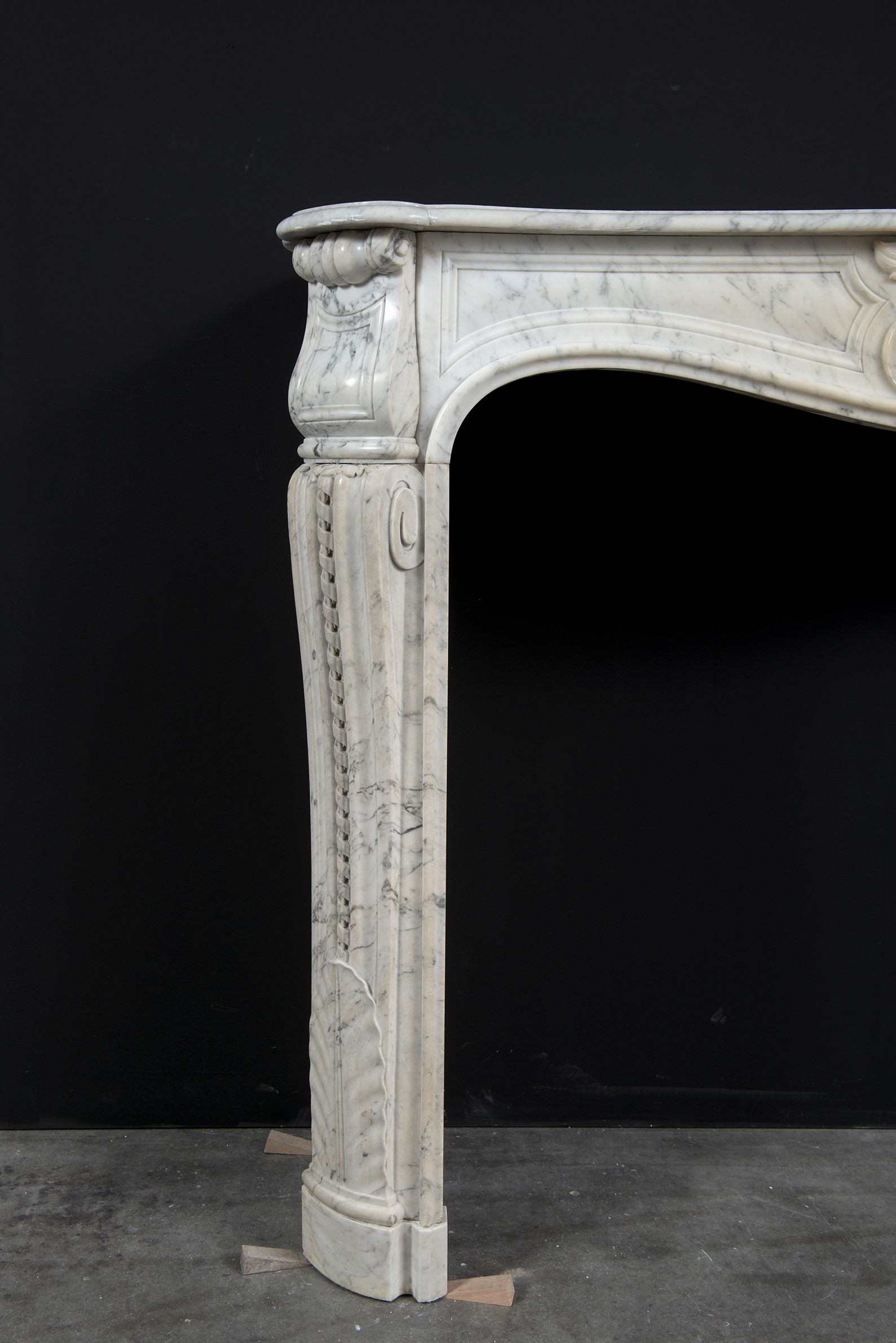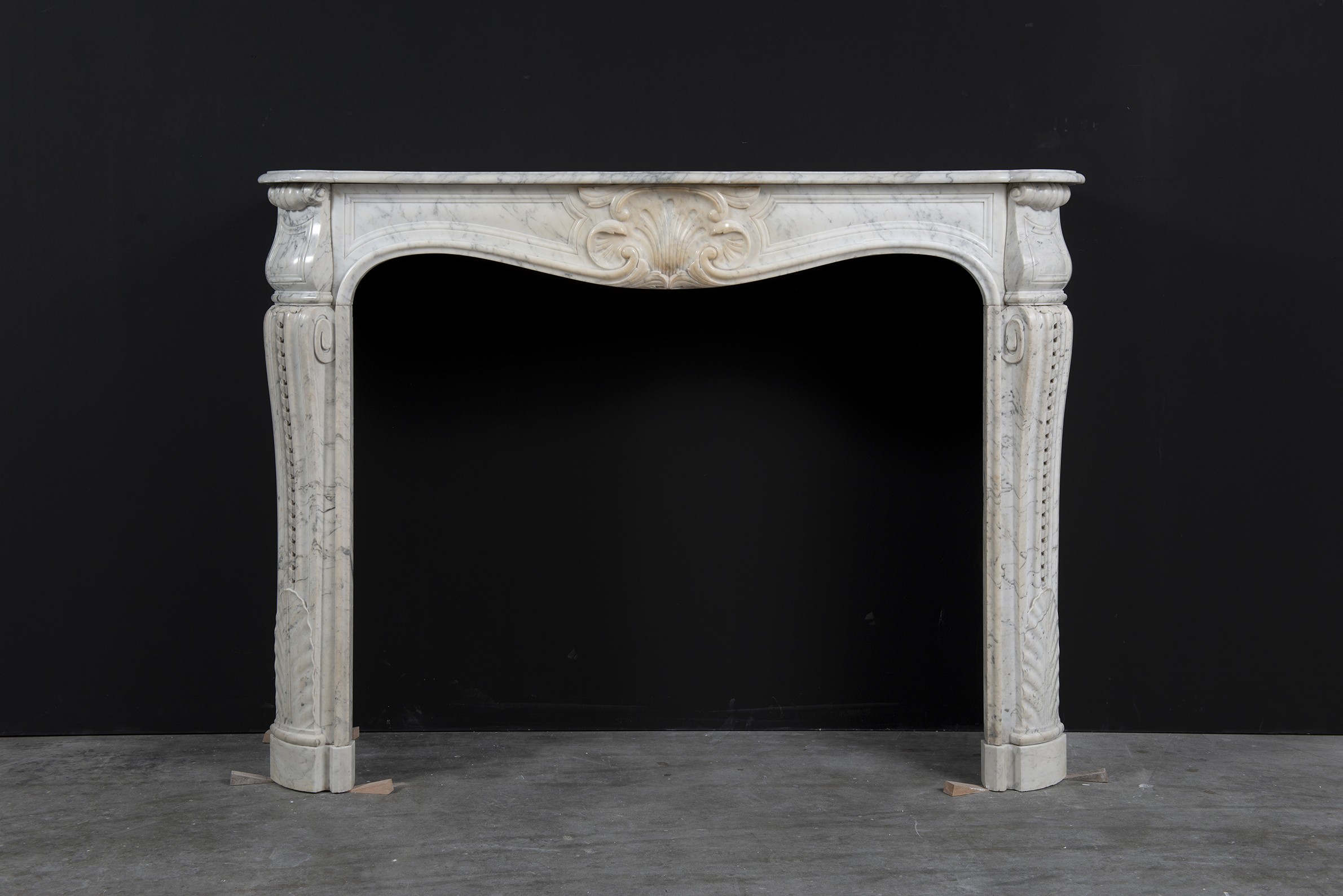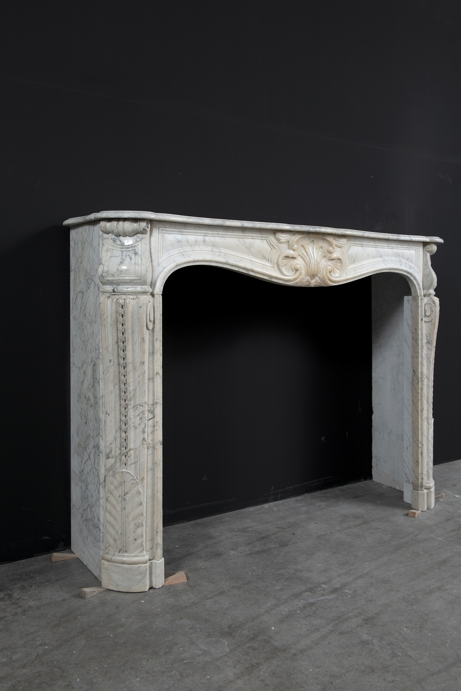 Antique Louis XV fireplace mantel in Carrara white marble.